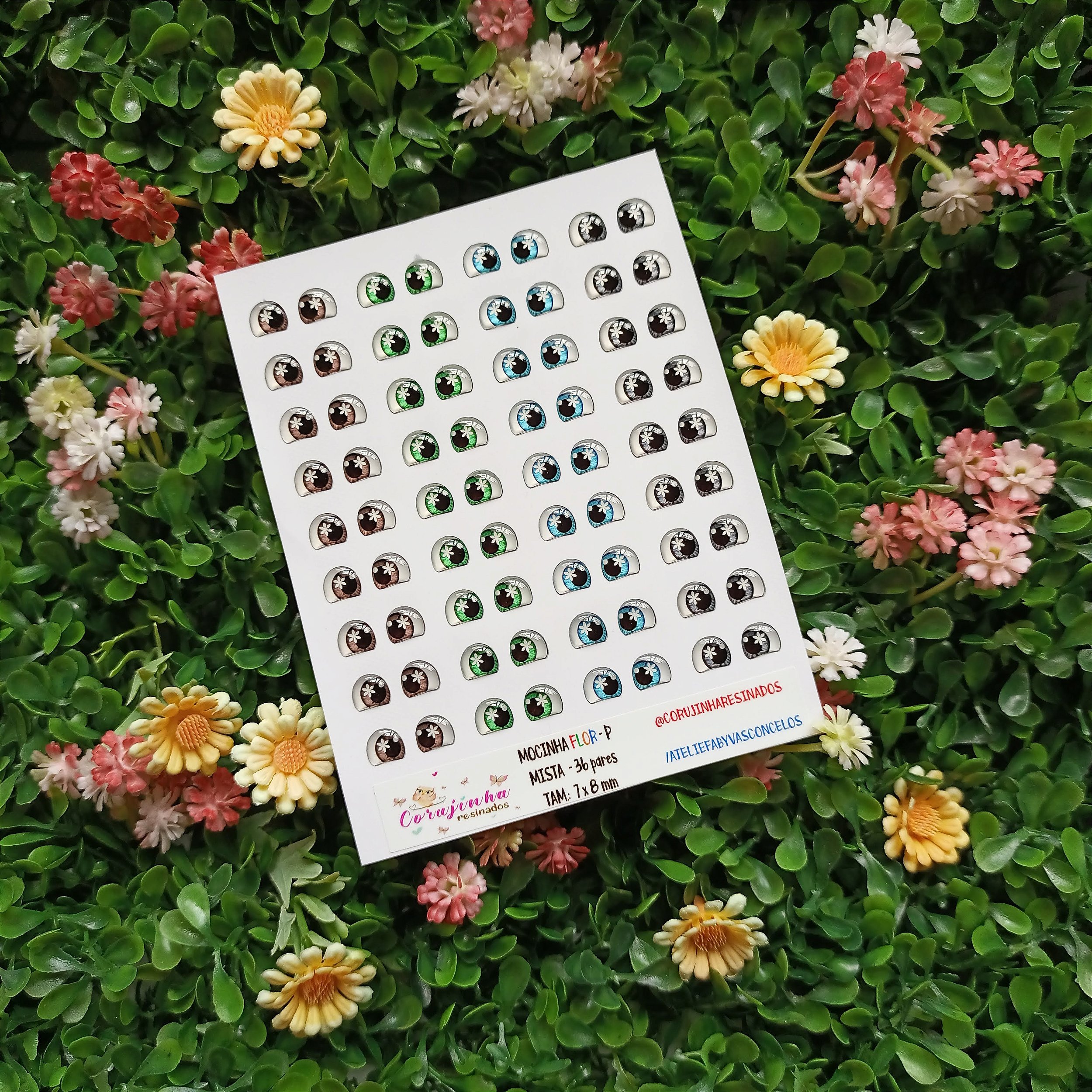 Olhos resinados em adesivo vinil de excelente material e brilho intenso