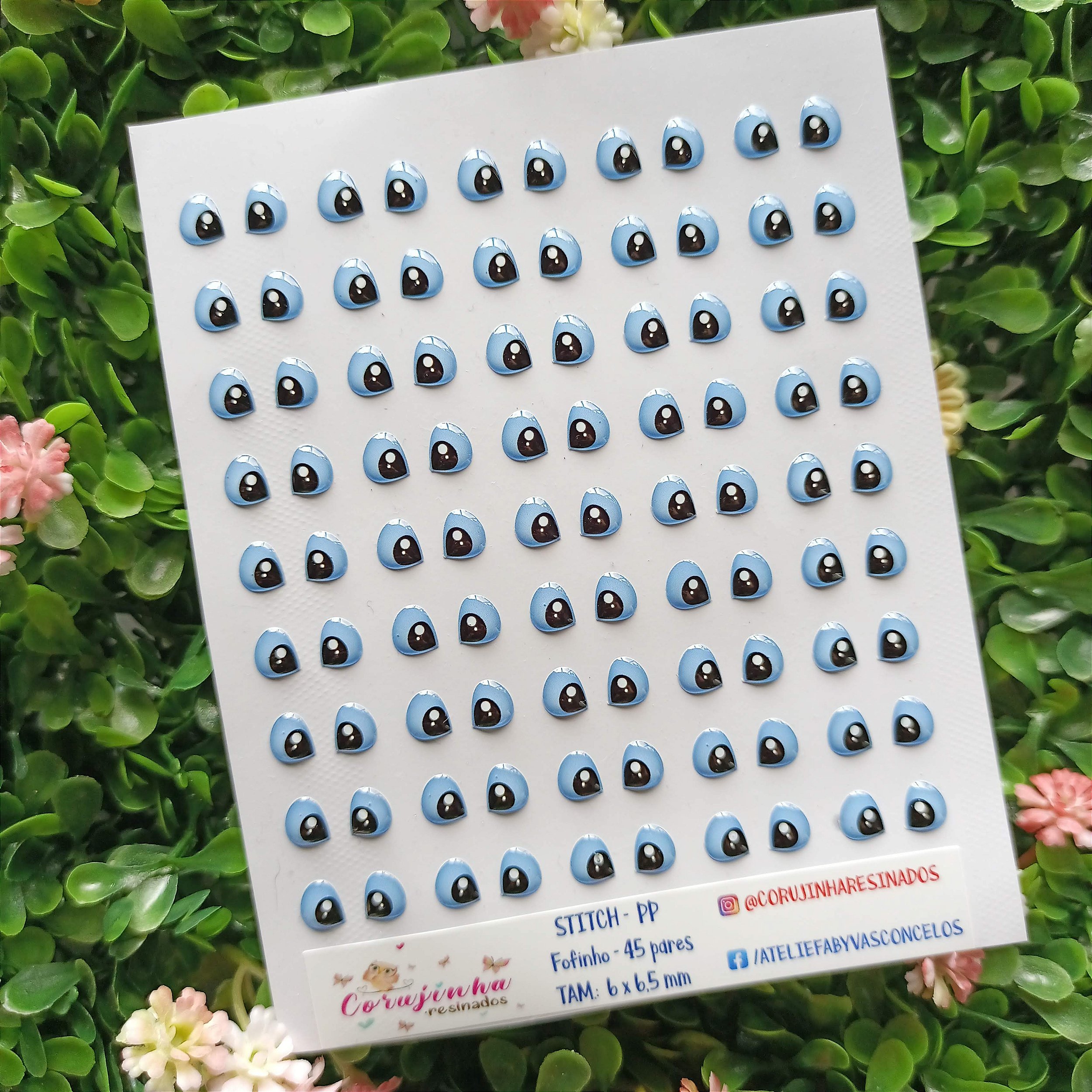 Olhos resinados em adesivo vinil de excelente material e brilho intenso