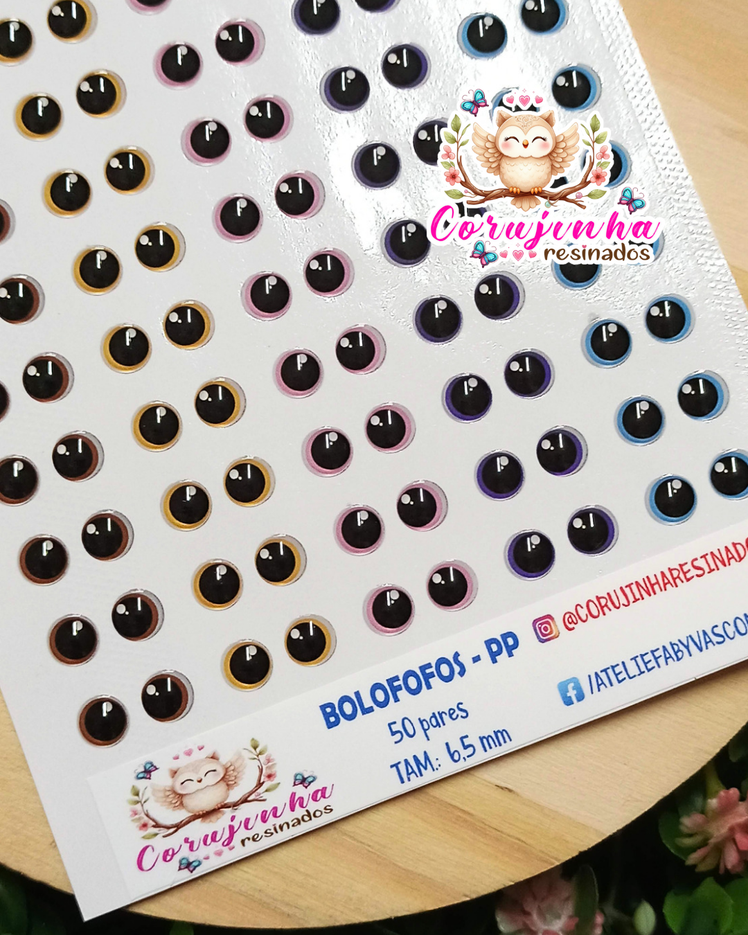 Olhos resinados em adesivo vinil de excelente material e brilho intenso