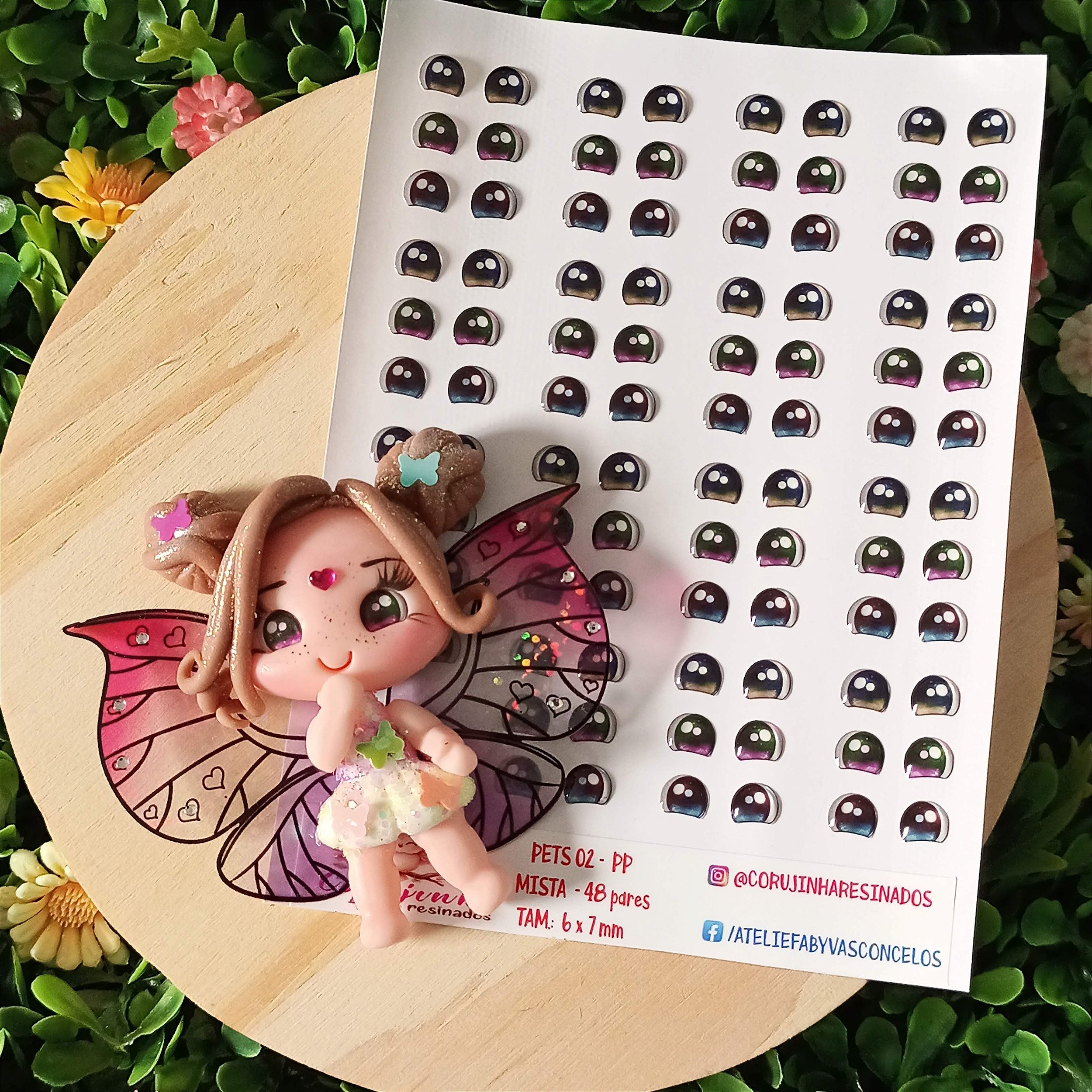 Olhos resinados em adesivo vinil de excelente material e brilho intenso
