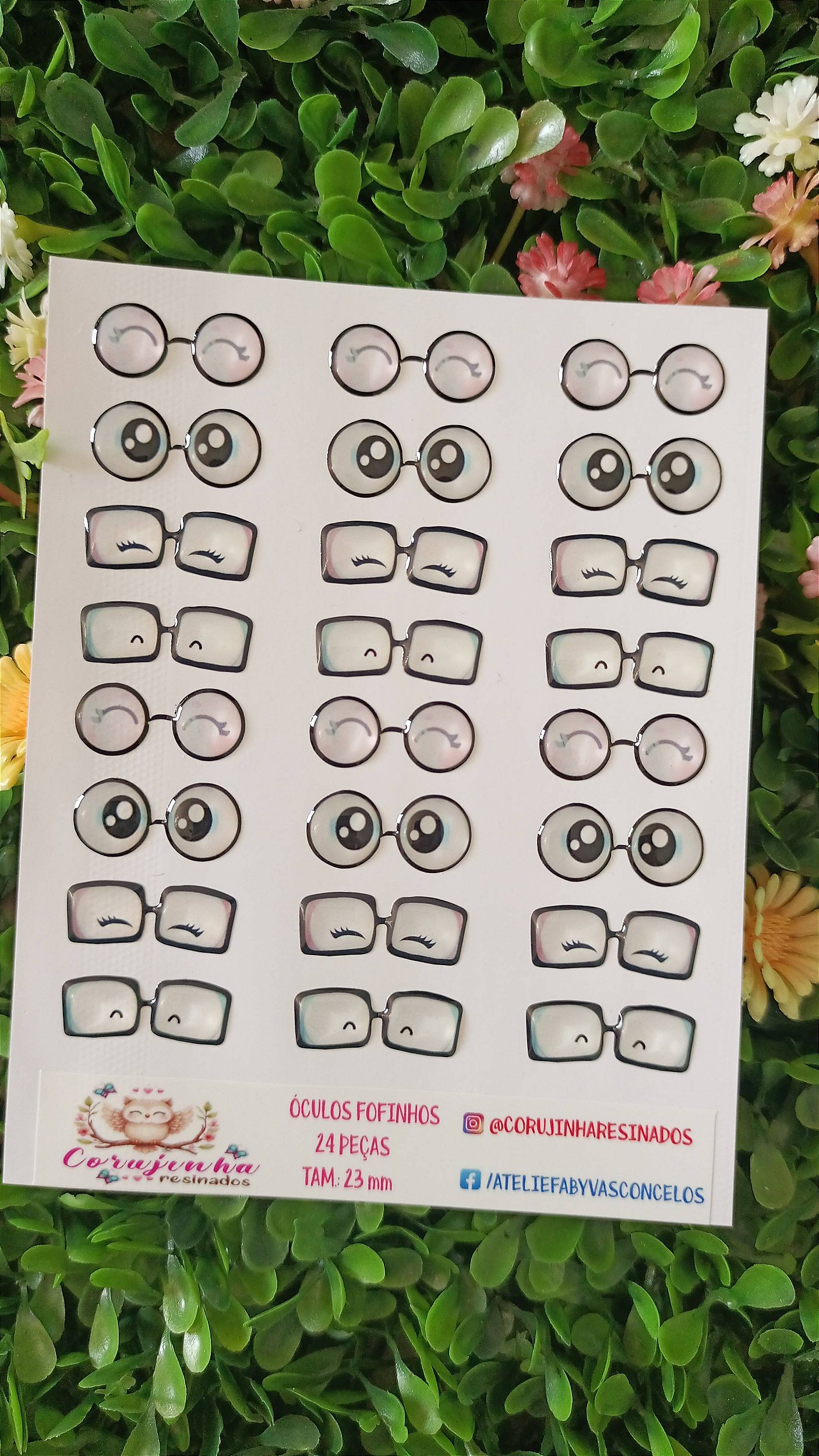 Olhos resinados em adesivo vinil de excelente material e brilho intenso