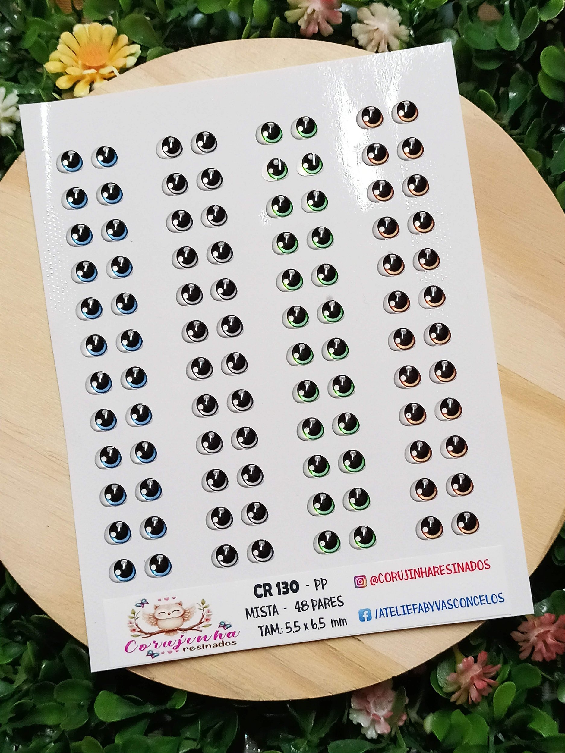 Olhos resinados em adesivo vinil de excelente material e brilho intenso